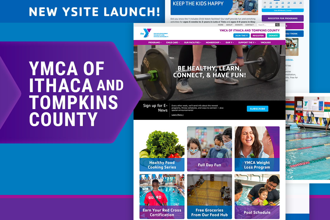 We are excited to announce that the YMCA of Ithaca and Tompkins County recently launched a new website. This Y has served its community for more than 150 years (and counting). To this day, the Ithaca YMCA continues to practice its mission to foster youth development, healthy living, and social responsibility. This newly designed website is another tool that will better serve this organization's members and future constituents by offering a great online user experience.